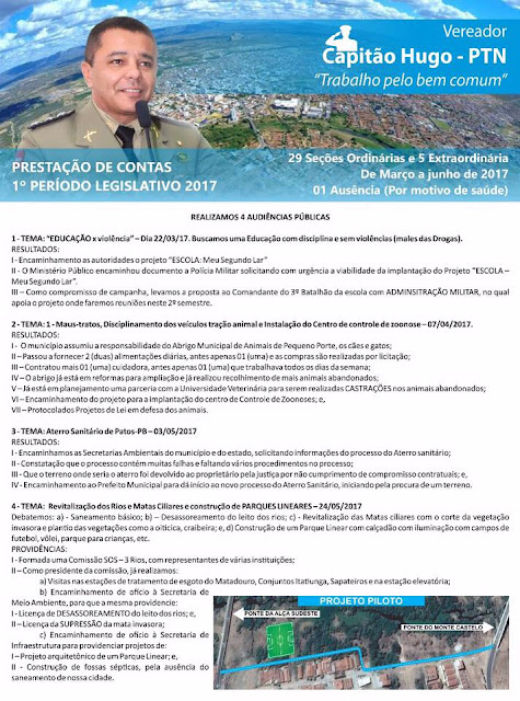 Na preocupação de levar ao conhecimento da população, informações dos trabalhos realizados neste primeiro semestre.