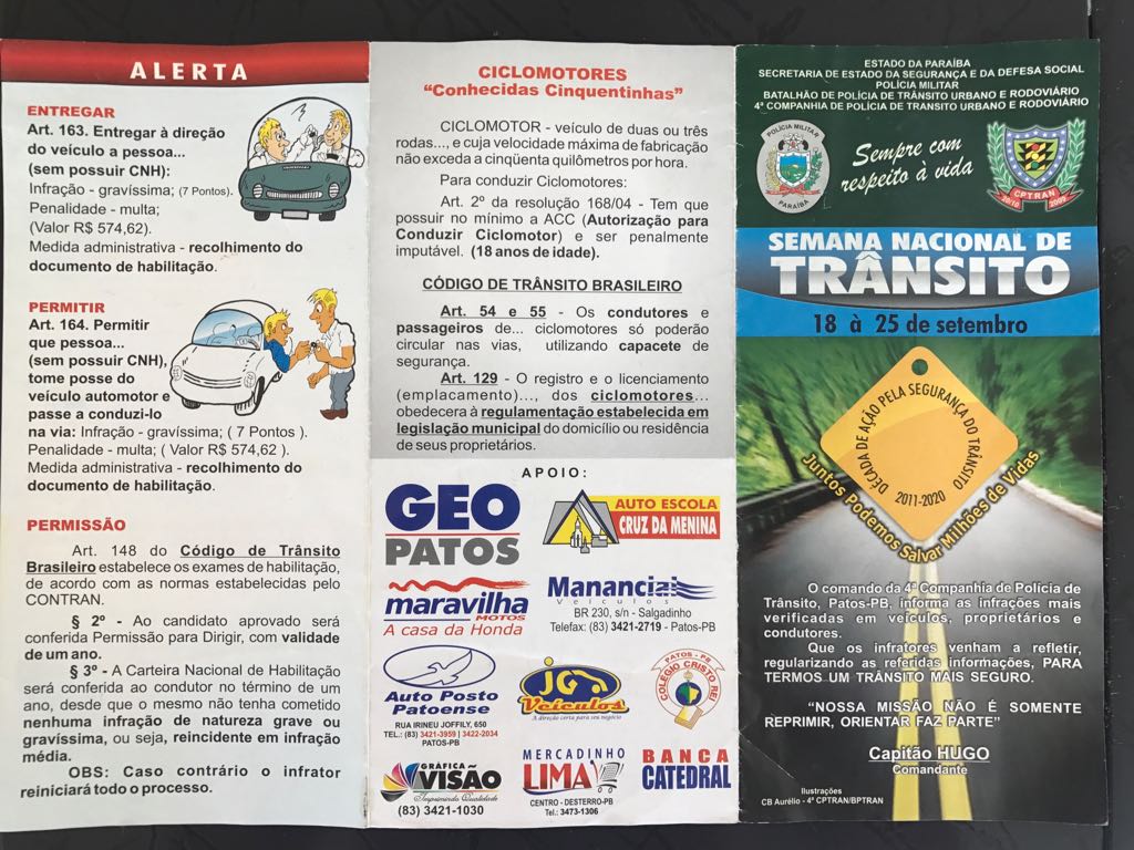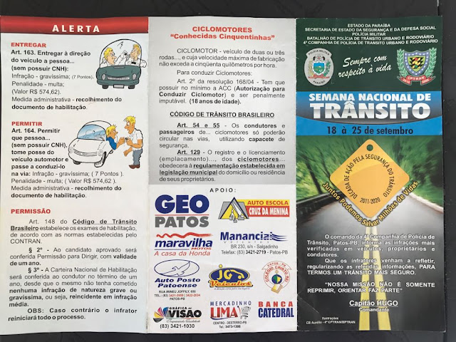 Estamos na Semana Nacional de Trânsito, 18 a 25 de setembro, por isso