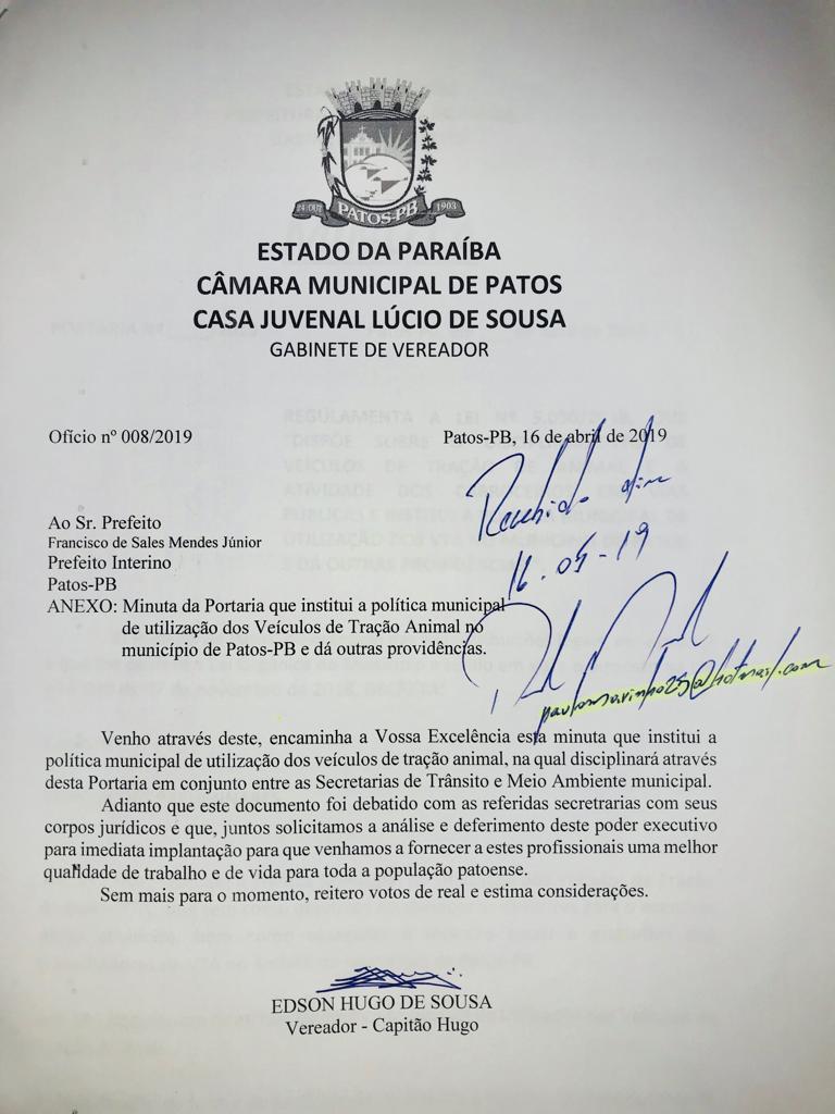 Secretaria de Trânsito, Meio Ambiente e ADOTA PATOS a minuta (rascunho) da